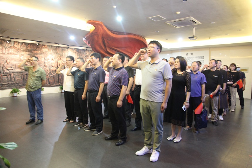 重温入党誓词,牢记初心使命。参观学习后,全体党员干部再次重温矢志不渝的入党誓词,全体党员胸带党徽,高举右手,紧握拳头,神情肃穆,庄严宣誓“我志愿加入中国共产党,拥护党的纲领,遵守党的章程,履行党员义务,执行党的决定……”,句句千斤,字字如磐,宣示着党员同志们坚定不移的政治信念和矢志奋斗的决心。这是一次思想的升华,更是一次灵魂的洗礼,提醒大家在前进路上要始终坚定奋斗初心,时刻警醒自己要以一名共产党员的标准来严格要求自己,永远听党话、感党恩、跟党走。