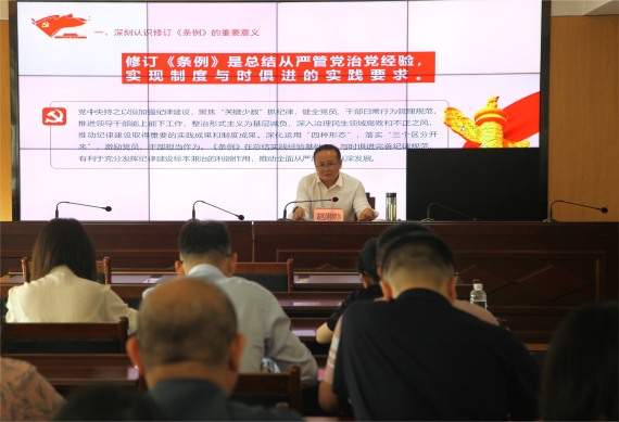 观看结束后,党组成员赵湘赣同志利用上廉政党课的形式,详细解读《中国共产党纪律处分条例》,持续增强警示教育的穿透力、震慑力和感染力。