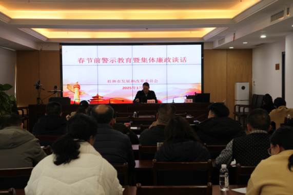 临近春节之际,为进一步贯彻落实中央八项规定精神及其实施细则,强化正风肃纪,营造清正廉洁的节日氛围,市发展改革委召开2025年春节节前廉政提醒谈话会,全委党员干部参加。